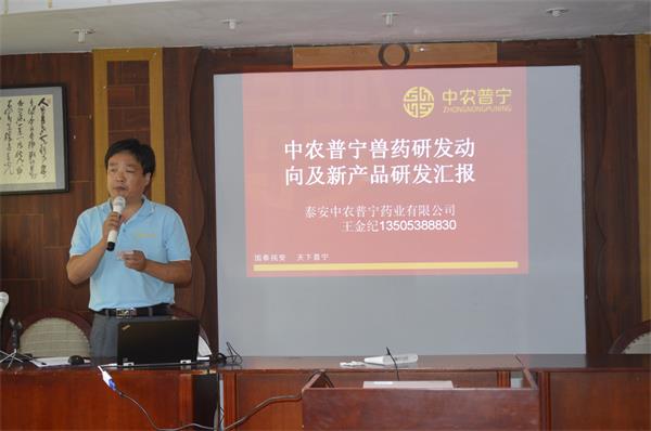 隨后公司技術(shù)研發(fā)總監(jiān)王金紀(jì)先生做了具有指導(dǎo)性意義報(bào)告,王總對(duì)當(dāng)前國(guó)家對(duì)獸藥企業(yè)的研發(fā)生產(chǎn)法規(guī)、獸藥研發(fā)形勢(shì)、行業(yè)發(fā)展現(xiàn)狀、公司現(xiàn)有產(chǎn)品情況給予了詳細(xì)說明。