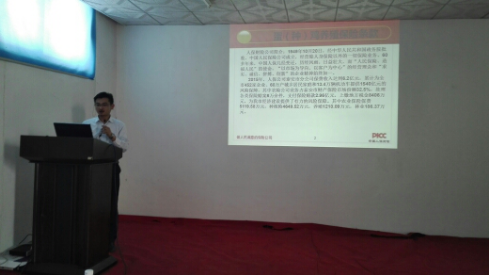 隨后會議由公司技術(shù)服務部范開見經(jīng)理作了關(guān)于《近期市場疾病流行情況及產(chǎn)品使用說明》的精彩報告。從地方區(qū)域差異、飼養(yǎng)模式不同、飼養(yǎng)品種等方面結(jié)合公司產(chǎn)品特點,進行集中講解。著重強調(diào)了管理重于治療的養(yǎng)殖理念。范經(jīng)理清晰的講課思路以及激情輕松幽默的講課方式,讓大家加深理解了產(chǎn)品。營造了濃厚的學習氛圍,提高了大家的產(chǎn)品知識水平,為后續(xù)的產(chǎn)品推廣和市場銷售打下扎實的理論基礎(chǔ)。