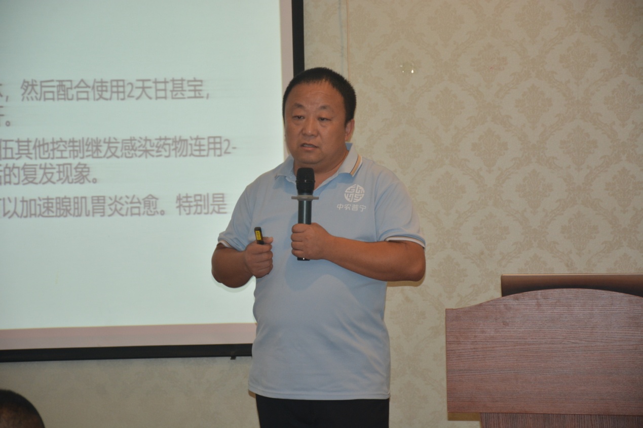銷售團(tuán)隊(duì)匯報(bào)結(jié)束后,公司技術(shù)服務(wù)部曹全營(yíng)與周恒兩位經(jīng)理給參會(huì)人員帶來(lái)了精彩的技術(shù)報(bào)告。兩位技術(shù)專家通過(guò)豐富的禽病診療經(jīng)驗(yàn),結(jié)合當(dāng)前養(yǎng)殖業(yè)疾病發(fā)病情況,不斷解鎖公司產(chǎn)品新功能,豐富用藥方案,為客戶排憂解難,使公司產(chǎn)品得到了客戶的一致好評(píng)。