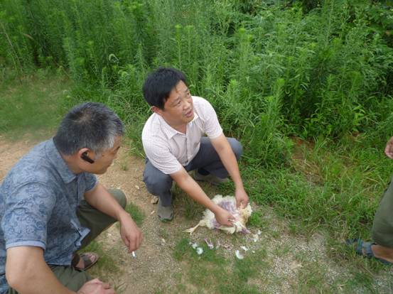 7月19日,公司總經(jīng)理康總、技術(shù)總監(jiān)王總與湖北省京山縣錢場養(yǎng)雞協(xié)會達成合作協(xié)議之后,又立刻奔赴湖北蘄春縣一家蛋雞場做技術(shù)指導。經(jīng)過細致觀察,耐心尋問,剖檢,最終找出了發(fā)病原因,及時將蛋雞場的損失降到了最低。