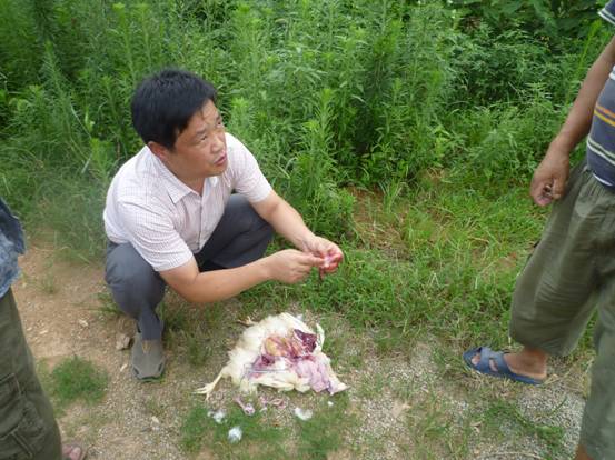 王總對病雞進行解剖